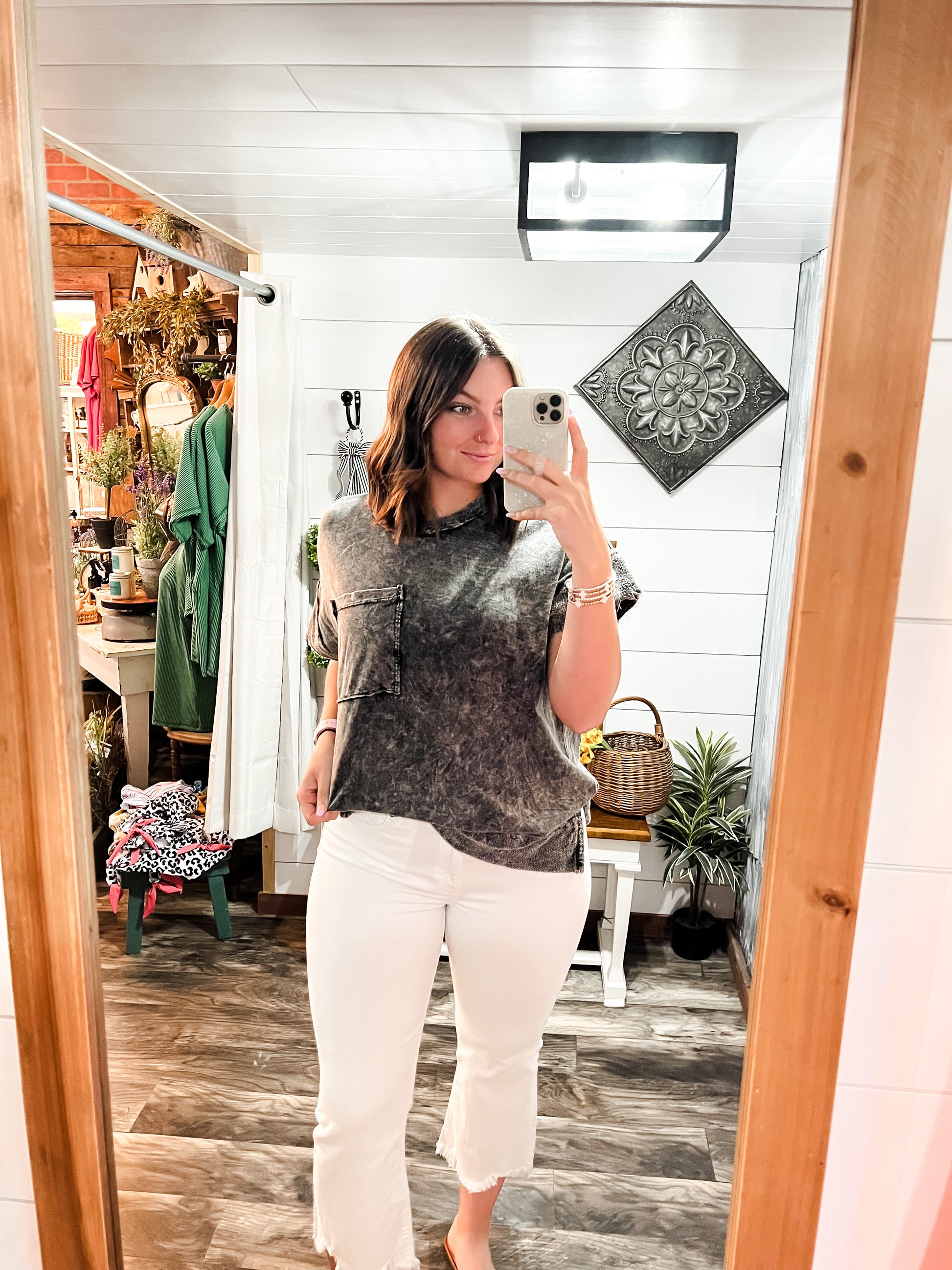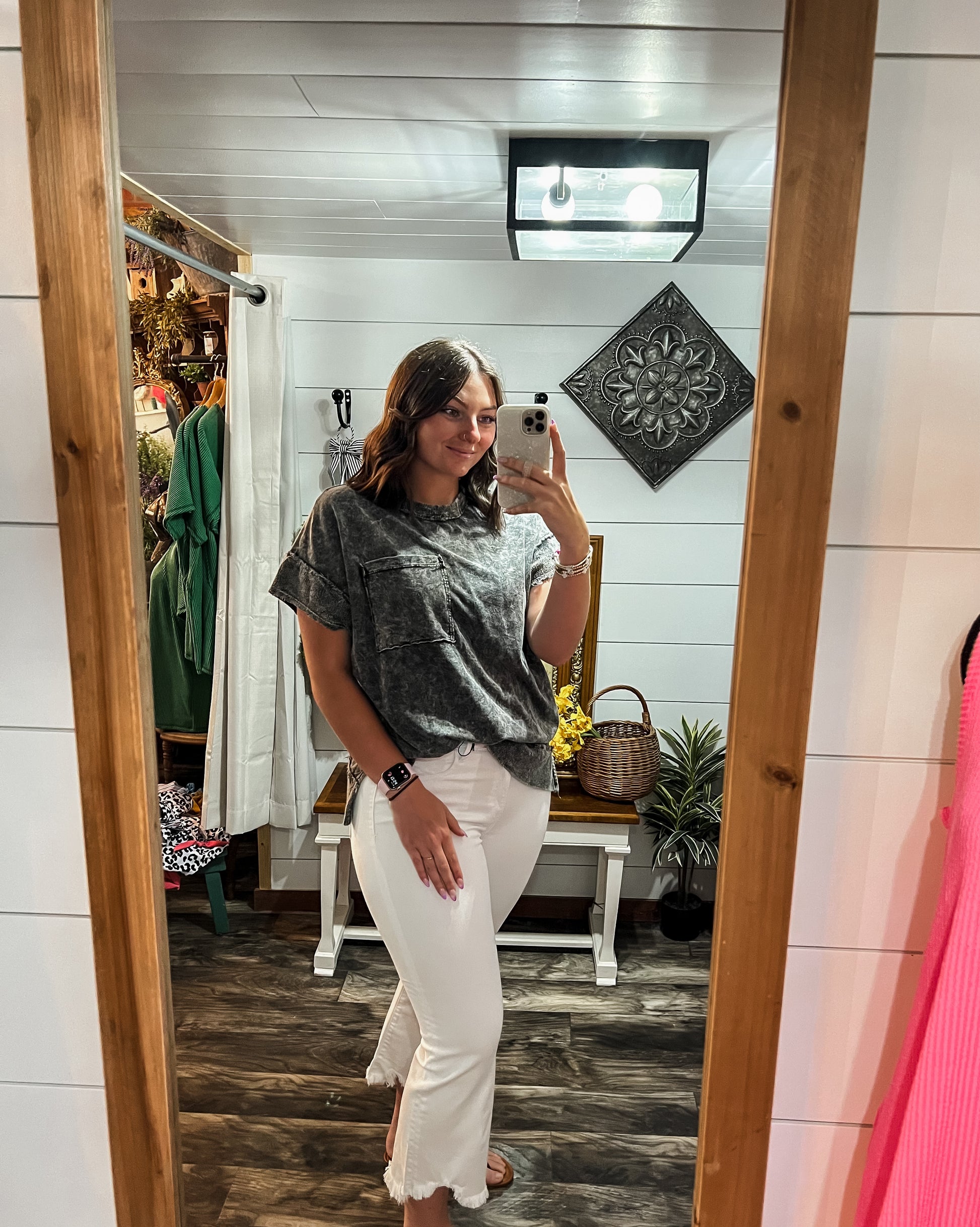Black Washed Cap Sleeve Pocket Tee