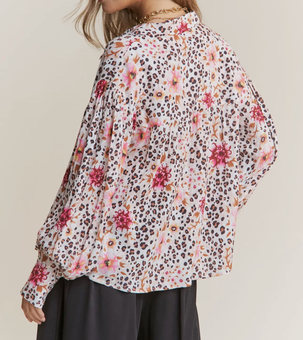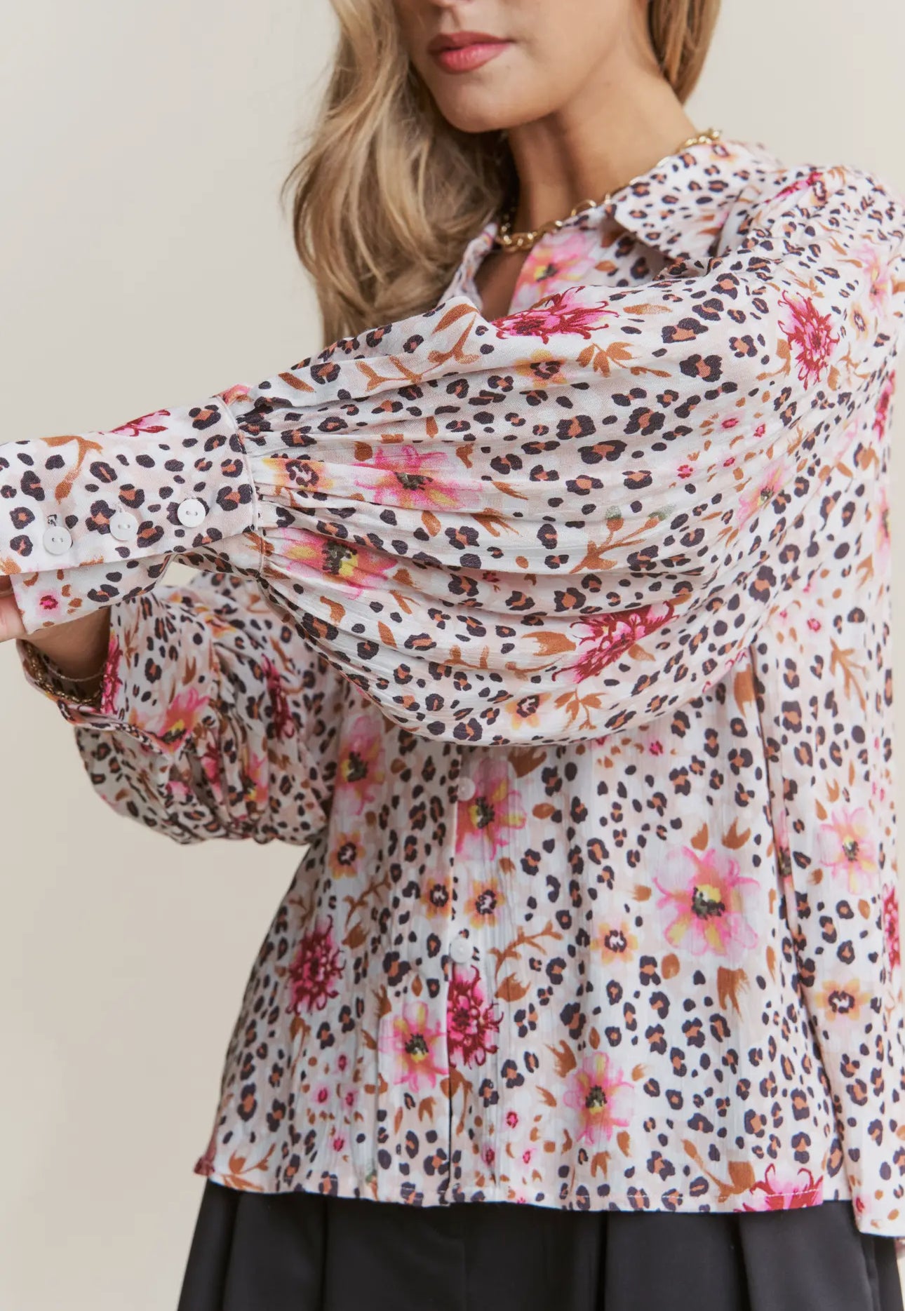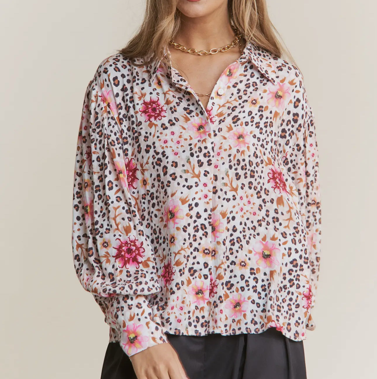 Leopard & Floral Print Chic Button Down Top